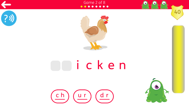 Each letter/sound has it’s own set of 8 games which includes introduction of the sound, word comprehension and picture matching. With each new sound players have 3 lives with which to complete the level and once used they must restart the level again before moving onto the next. Games are designed to help with segmenting and blending skills and become progressively harder as you move through the game. Also in line with the curriculum the order in which the sounds appear mirrors those taught in schools. Throughout the mini games there are over 1200 words for children to learn to read as they utilise the phonics sound knowledge they have gained, forming a fantastic foundation for learning to read.