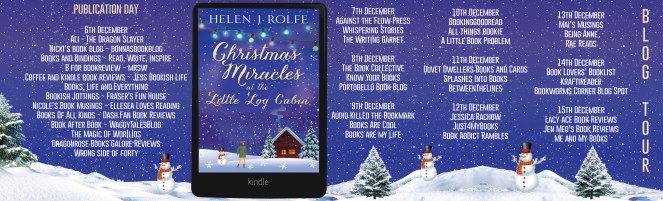 Day six of Blogmas already and today I’m taking part in the Blog Tour for the newly published Christmas Miracles At The Little Log Cabin by Helen J Rolfe. I love a good festive read to get me in the Christmas mood so jumped at the chance to take part and I hope you enjoy my review. Many thanks to Rachel and of course Helen for inviting me to take part in the publication tour.